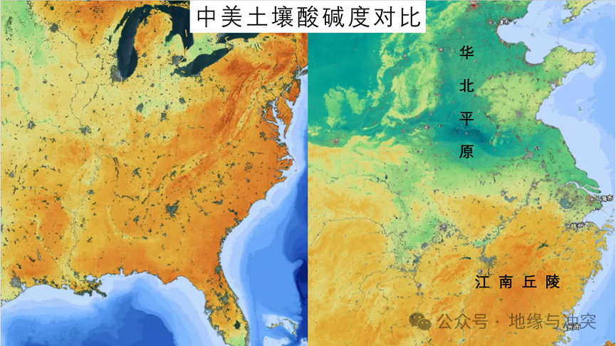 造成中美土壤一酸一鹼的原因就是氣候,中國是典型季風氣候,夏季高温多雨,冬季寒冷少雨,土壤在夏季“淋溶”之後在冬天又恢復了;而美國東南部冬天也下不少雨,相當於土壤全年都在淋溶。