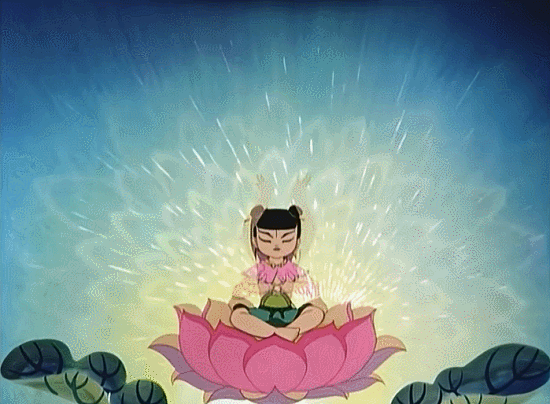 他端坐在荷花中間,姿態不斷變化,如同佛像一般莊嚴。