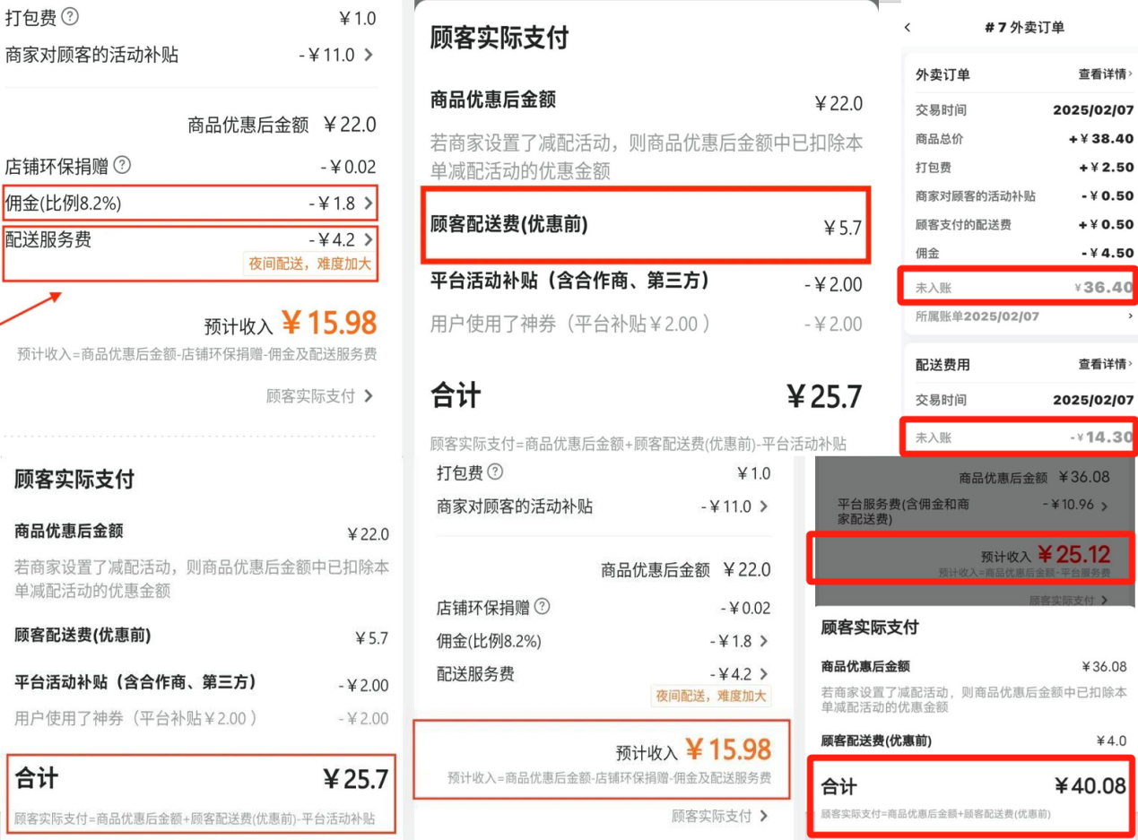 不過,從諸多流出截圖看,美團收的不止佣金,還有服務費,這兩項費用加在一起並不低,加上優惠折扣、“拼好飯”、免配送費等活動,商家的負擔的確非常大。