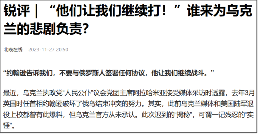 結合英國首相約翰遜當時跑去基輔勸説澤連斯基不要停火,美國和英國是有很大的嫌疑。