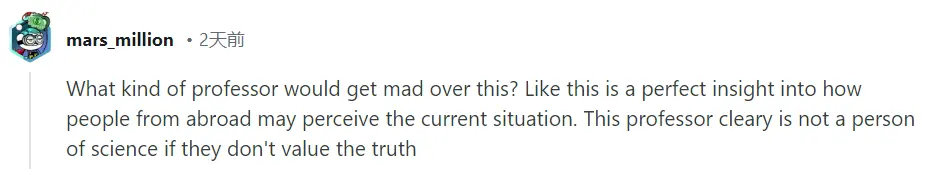 什麼樣的教授會為此生氣?這很好地洞察了外國人如何看待當前局勢。不重視事實的教授,顯然不配談科學