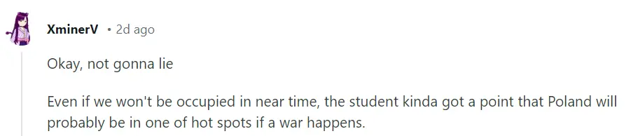 好吧,我不會撒謊,即使波蘭不會在短期內被佔領,但這位學生也明白,如果發生戰爭,波蘭可能會成為雙方的必搶地區之一。