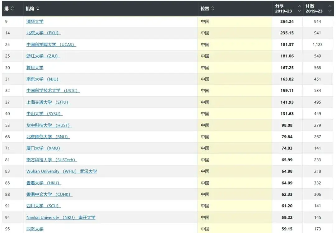 發現沒?清華大學、浙江大學在這裏的露出頻次很高。