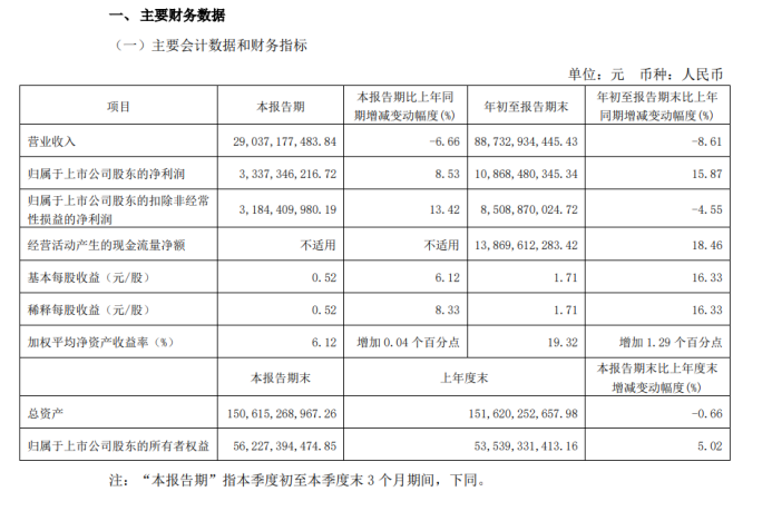 據其2024年三季報顯示,儘管前9個月的營收下滑了8.59%,但是其歸母淨利潤卻大幅增長了15.9%至108.7億元,利潤規模創下新高。