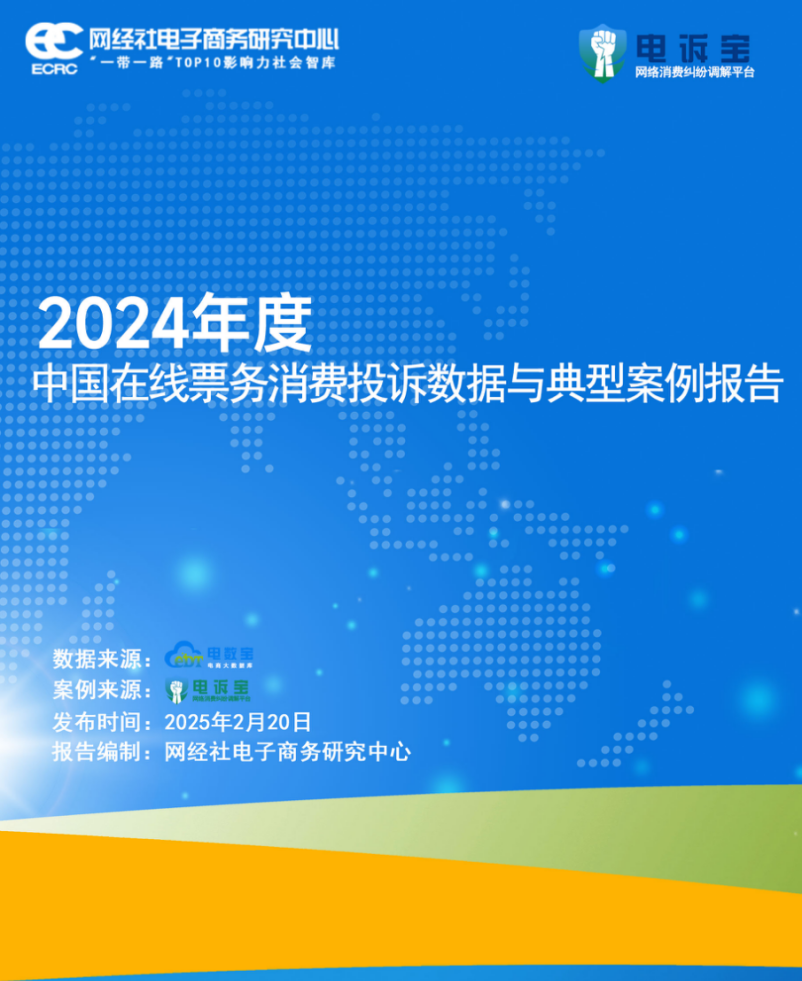 在此背景下, 2025年2月20日,依據網絡消費糾紛調解平台“電訴寶”2024年全年受理的全國200家互聯網消費平台糾紛案例大數據,“一帶一路”TOP10影響力社會智庫網經社電子商務研究中心發佈了《2024年度中國在線票務消費投訴數據與典型案例報告》,為消費者分析在線票務行業信任痛點。
