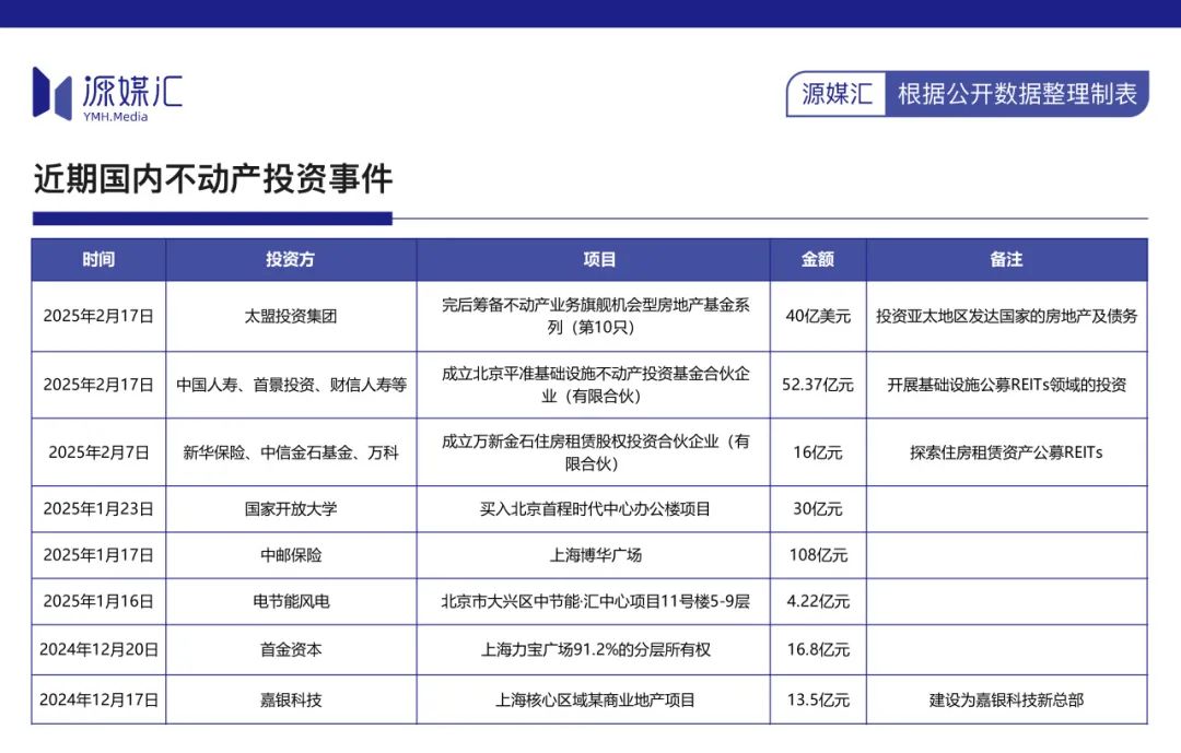 而中郵保險、新華保險近期也在大手筆買入商業地產資產,包括太盟集團、首金資本等資產管理公司同樣計劃或已經在買樓。