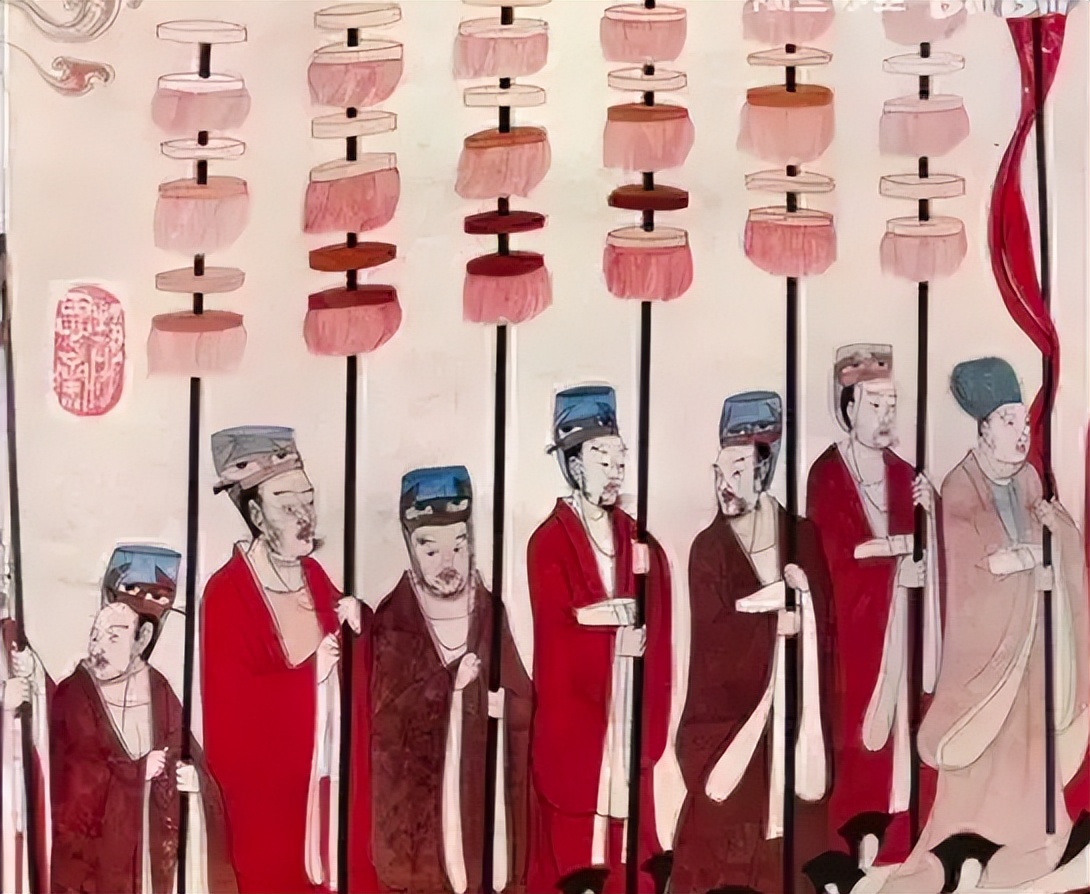 一般來説我們熟悉的皇宮儀仗所持的旌旗它長下面這個樣子,比較符合我們熟悉的“紅旗招展,迎風飛舞”的場面。
