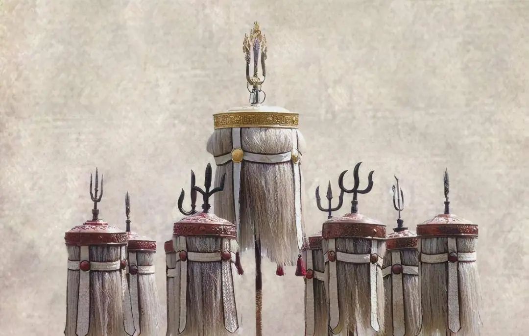 據《元史太祖本紀》記載:“元年丙寅(1206年),帝大會諸王羣臣,建九斿白旗,即皇帝位於斡難河之源。”這是蒙古人首次對九斿白纛的記載。