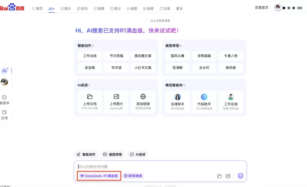 最重要的是,百度AI搜索所提供的DeepSeek-R1模型,不僅是“滿血版”,而且還“不限量”,這意味着再也不用擔心服務器繁忙,可以盡情享受推理模型帶來的便利。