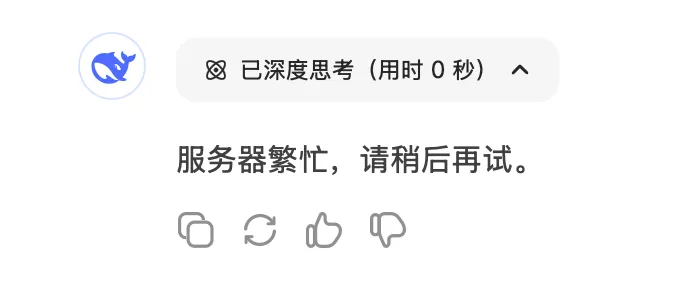然而,DeepSeek有多讓人愛,每天僅第一次提供響應的體驗就多讓人恨。相信不少人已經被“服務器繁忙,請稍後再試”的回覆搞得PTSD了。