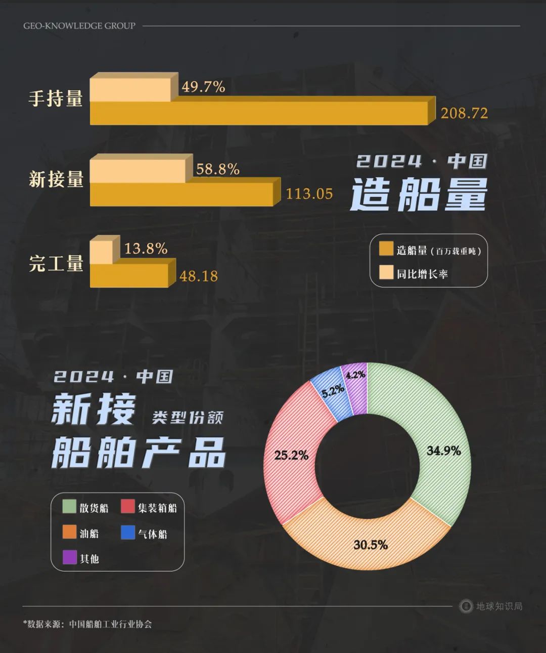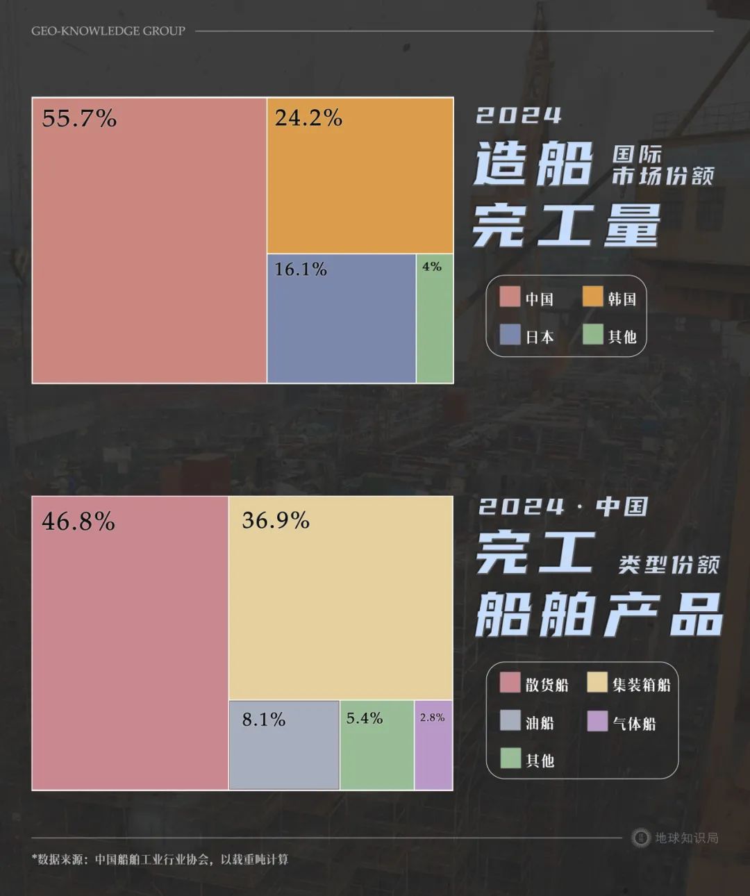 2024年,中國造船完工量、新接訂單量和手持訂單量三項指標均為世界第一。而全美國所有船廠手頭的民用訂單加起來,只有23.5萬噸,**相當於中國的1/230,**且這些單子還都是因為《瓊斯法案》才有的。