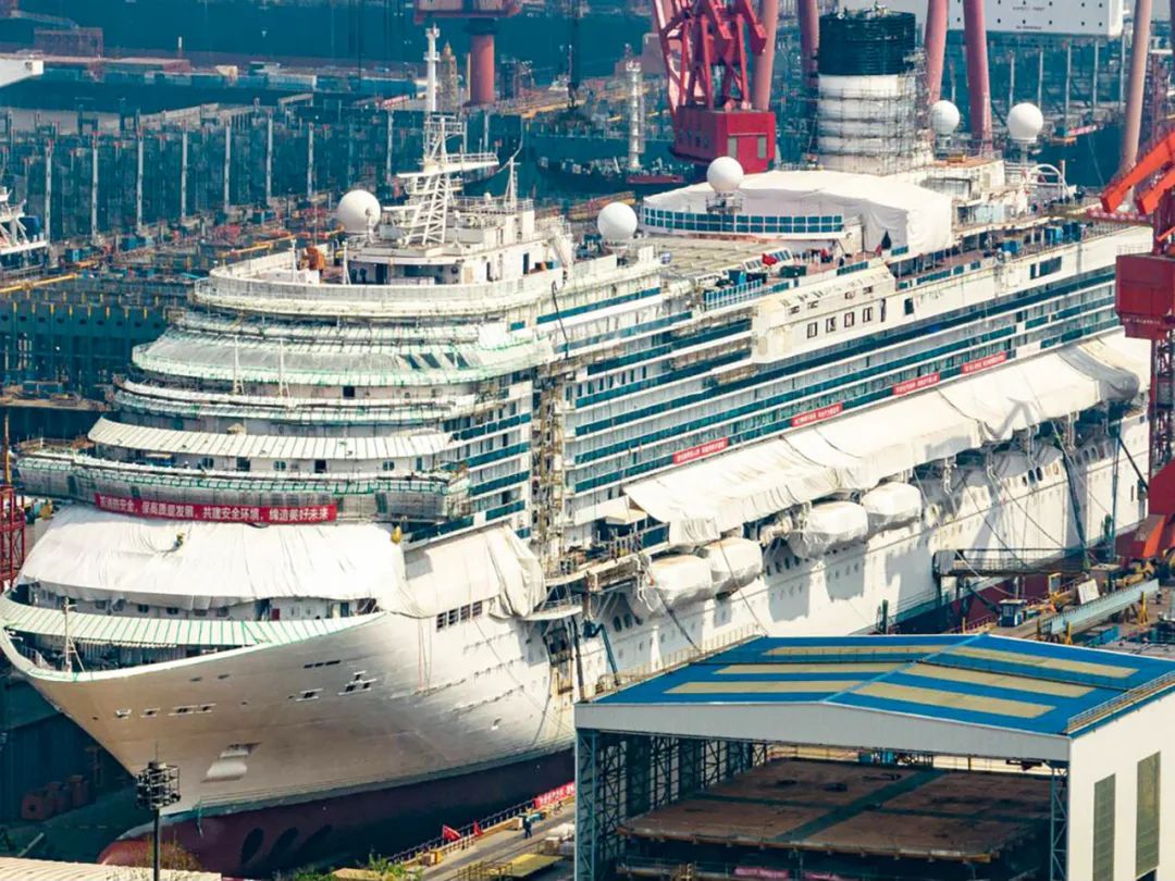 造這樣一艘船,需要消耗3.5萬噸基礎鋼材;4000多千米的電纜聯通全船,長度相當於從北京飛到喀什的距離;120千米的通風管道,為每個客房和艙室提供新鮮空氣。