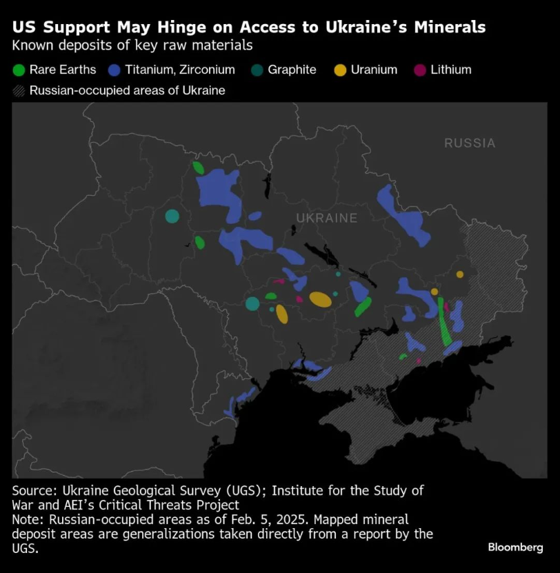 彭博社稱,對烏克蘭海量稀土資源的炒作其實始於烏克蘭自己。“去年11月,為了找到與即將上任的特朗普接觸的方法,烏方提交了一份‘勝利計劃’,其中就包括對該國礦產資源巨大潛力的描述——總價值超過1萬億美元”。特朗普對此非常感興趣,不久前他在接受福克斯新聞採訪時明確談到了他與烏克蘭官員的會談:“我告訴他們,我想要價值5000億美元的稀土。” 美國全國公共廣播電台也提到,是澤連斯基在去年秋天首次向特朗普提出,可以將烏克蘭的採礦權授予美國公司,以此換取美國為烏克蘭提供安全保障。