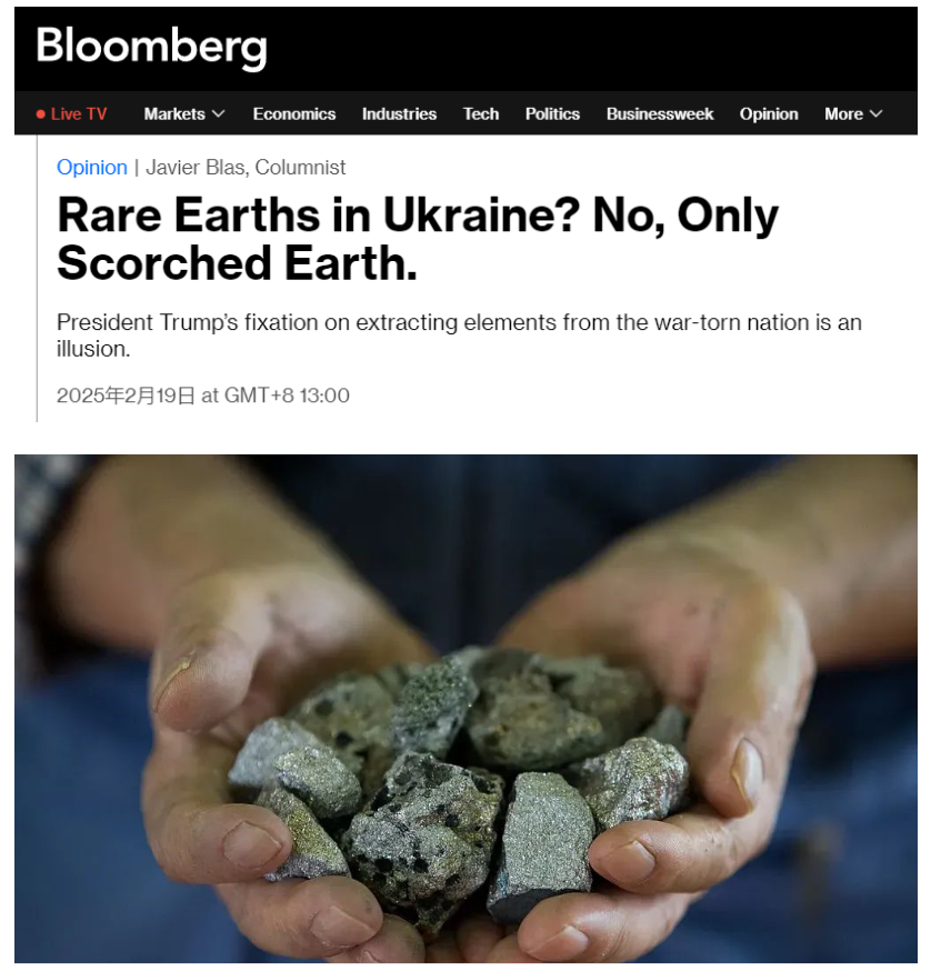 該報道嘲諷稱,“烏克蘭的稀土?不,只有焦土。令人驚訝的是,許多人,尤其是特朗普,似乎相信這個國家擁有豐富的礦產資源,這是愚蠢的”。
