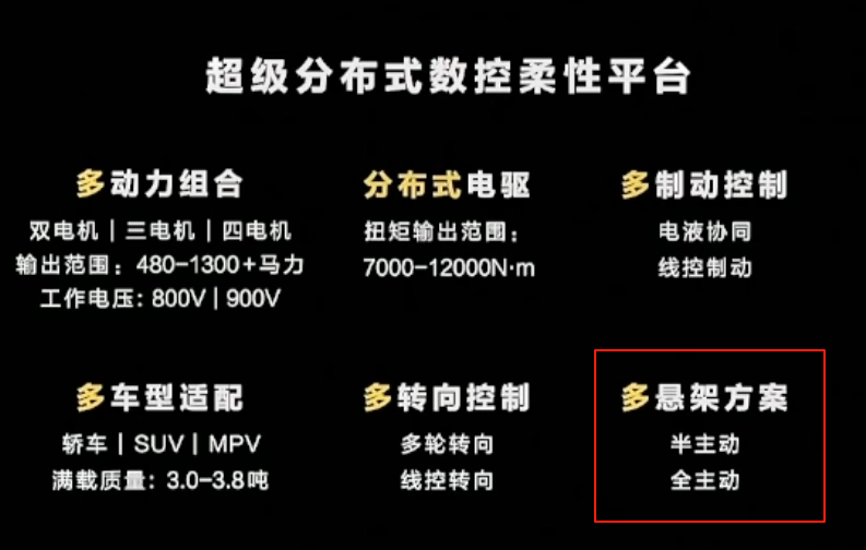 唯一可能的線索,就是在開頭介紹途靈龍行底盤的時候的有這麼一行小字,它支持半主動和主動懸架。