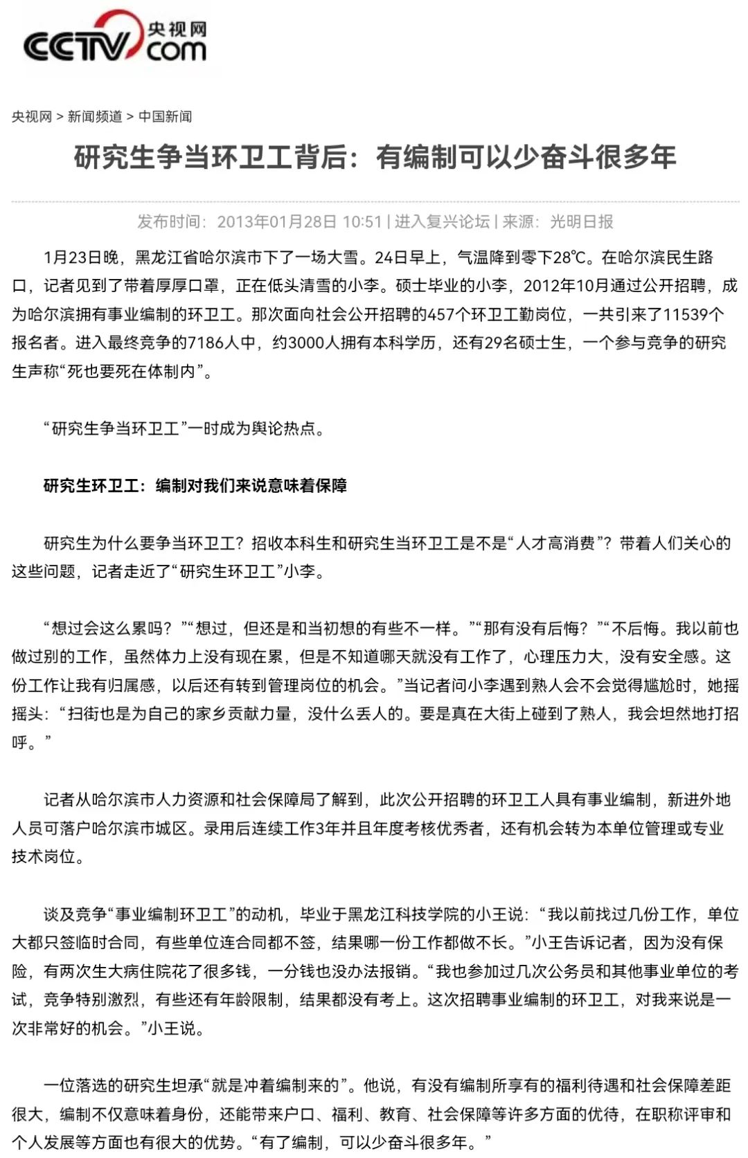 現在看來,哈爾濱的做法也沒有什麼問題,當年環衞系統能拋給高學歷年輕人最大的誠意就是——