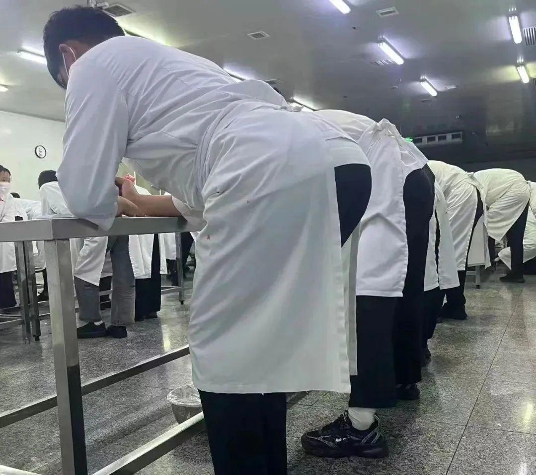這篇文章中提到,“不久前,網絡上流傳出一張好利來內部員工培訓圖片,蛋糕師們穿着統一的制服,將臀翹到統一高度,認真地在練習裱花及書法。如果沒有文字解釋,會讓人誤以為在進行一場祭祀儀式。”