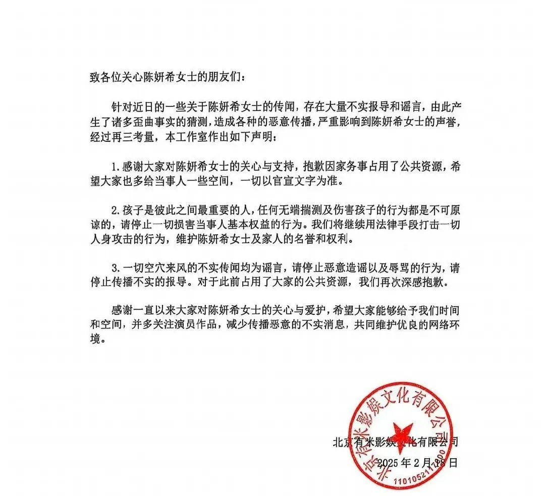 陳曉、陳妍希發微博官宣離婚,文案體面:“感恩遇見,今後各自安好,未來同為孩子的父母,共同陪伴孩子成長。”