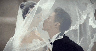 陳妍希甜美的臉被一襲柔軟純白的頭紗籠罩,陳曉一把撩起頭紗,彎腰低頭湊到陳妍希的臉前印上輕輕一吻。