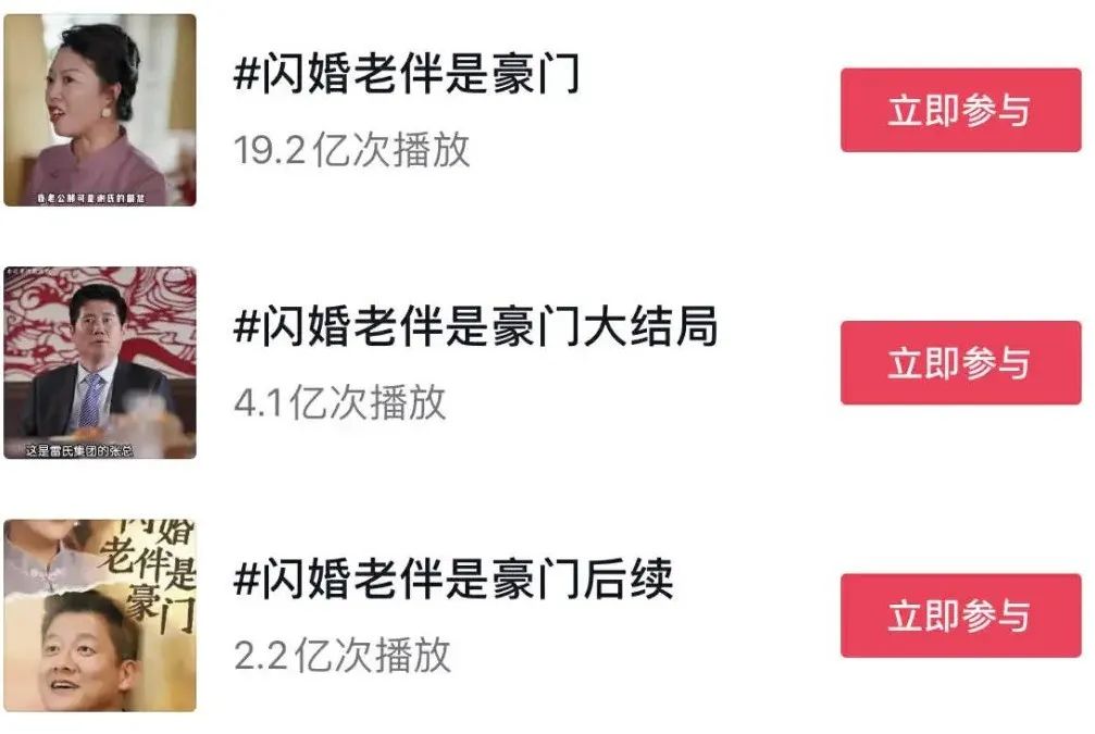 《閃婚老伴是豪門》在抖快平台的總播放量超過8.5億,首周充值量就有3000萬。