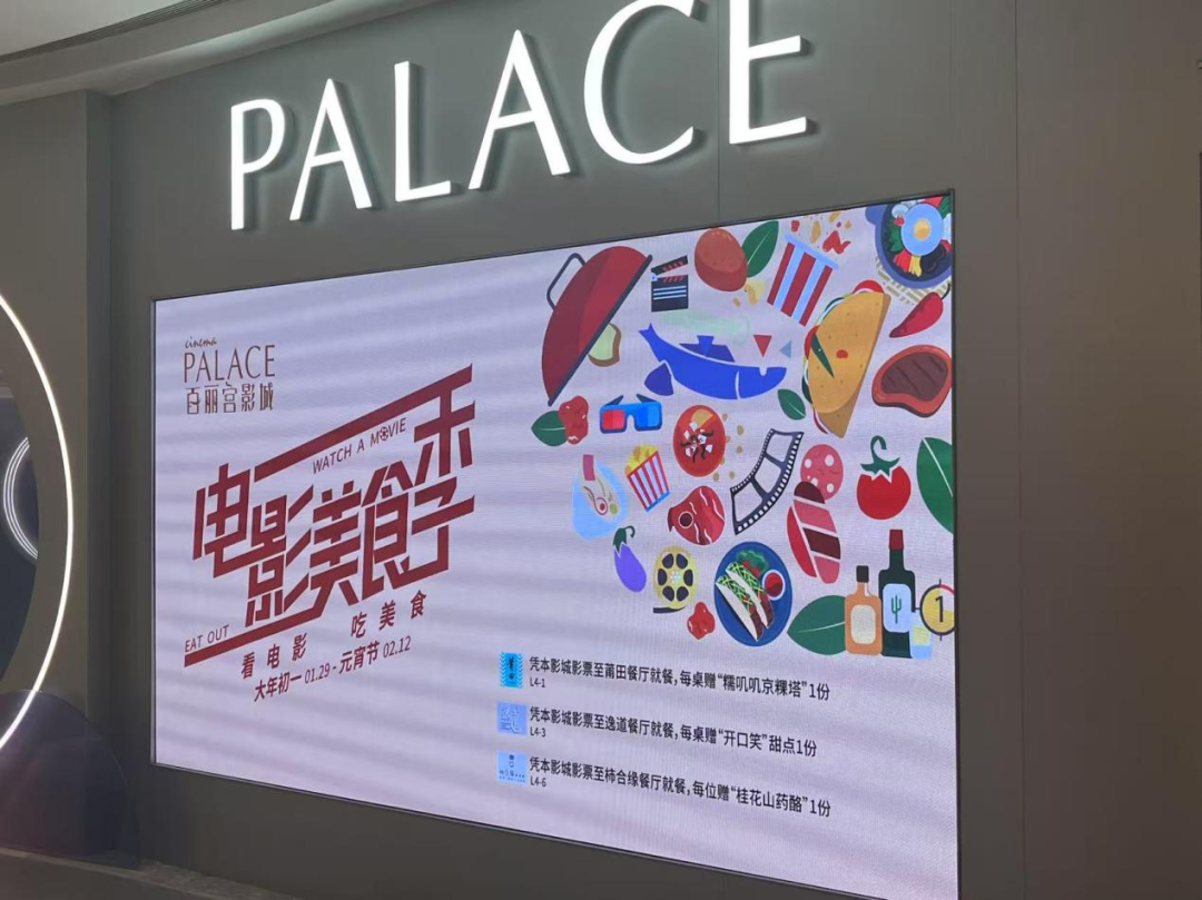 坐落於南京IFC國金中心四樓的百麗宮影院就與莆田餐廳、逸道餐廳、柿合緣新京菜三家餐廳進行了優惠活動:憑着電影票可到餐廳領取店內招牌小吃一份,拿着餐廳小票到電影院也可以領一份觀影套餐。