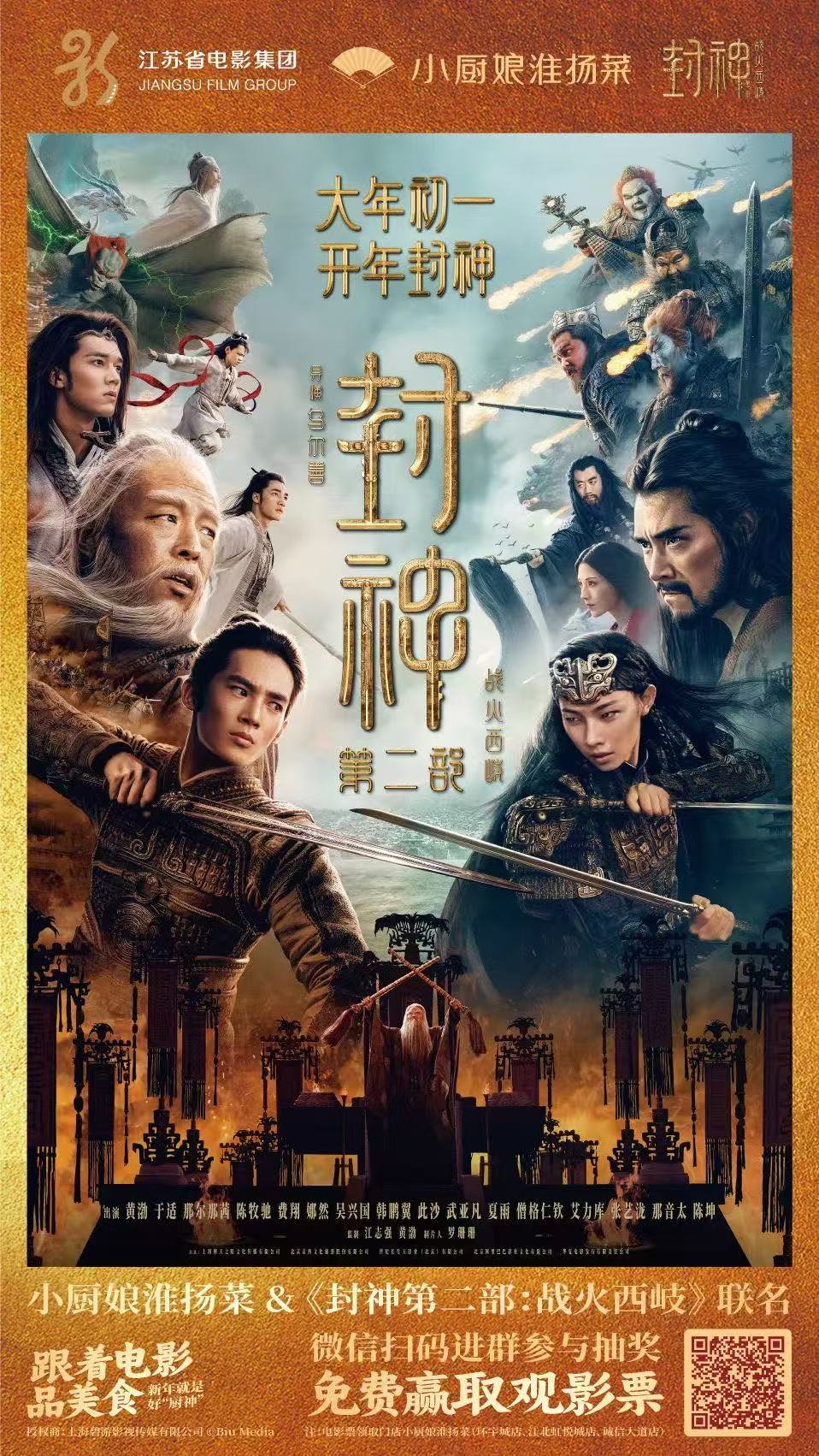 此次春節檔,作為《封神2》的出品方,江蘇省電影集團與片方版權洽談,由小廚娘淮揚菜限時落地推出《封神》主題餐廳,並推出“封神”聯名套餐——顧客購買任意兩款《封神》套餐,有機會抽獎獲得電影票。
