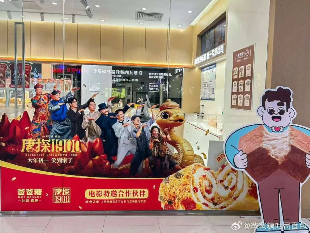 在春節檔電影《唐探1900》的宣發合作中,陪伴觀眾十年的“唐探IP”與各個品牌進行了深入的聯名合作。比如,電影主演與安慕希進行了廣告合作推送,形成深度合作綁定,“唐探IP”還與爸爸糖、和府撈麪等諸多餐飲品牌建立了全國線下主題店、線上聯合營銷等精彩紛呈的定製合作。