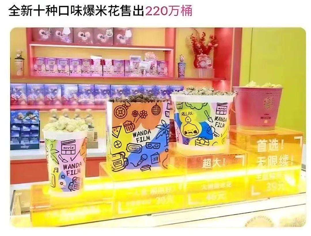 今年春節檔,萬達電影在自營飲品“桃桃西打”和“莓莓西打”之外,推出的10種口味的爆米花同樣收穫了消費者的歡迎。據《第二春運現場:萬達電影2025春節檔報告》顯示,春節期間累計售出220萬桶爆米花。