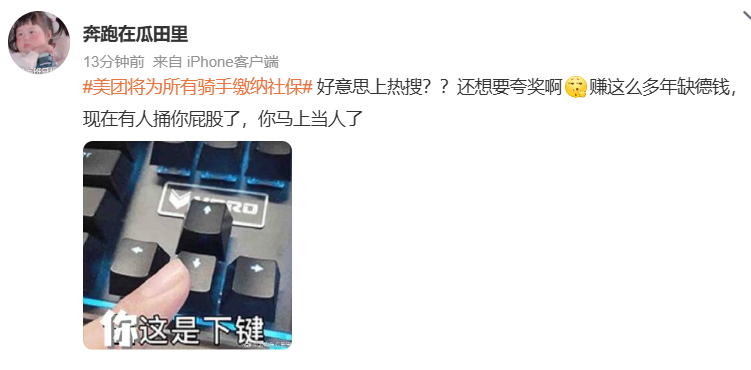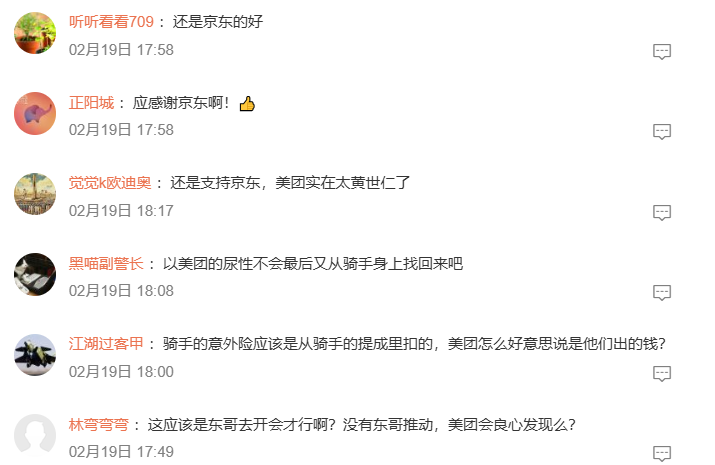 京東年初上線外賣業務,2月份決定交五險一金,3月1號就開始。反觀美團,交社保好像搞科研。有網友不禁要問,交社保的難度這麼大嗎?三年時間,芯片也搞出來了吧?