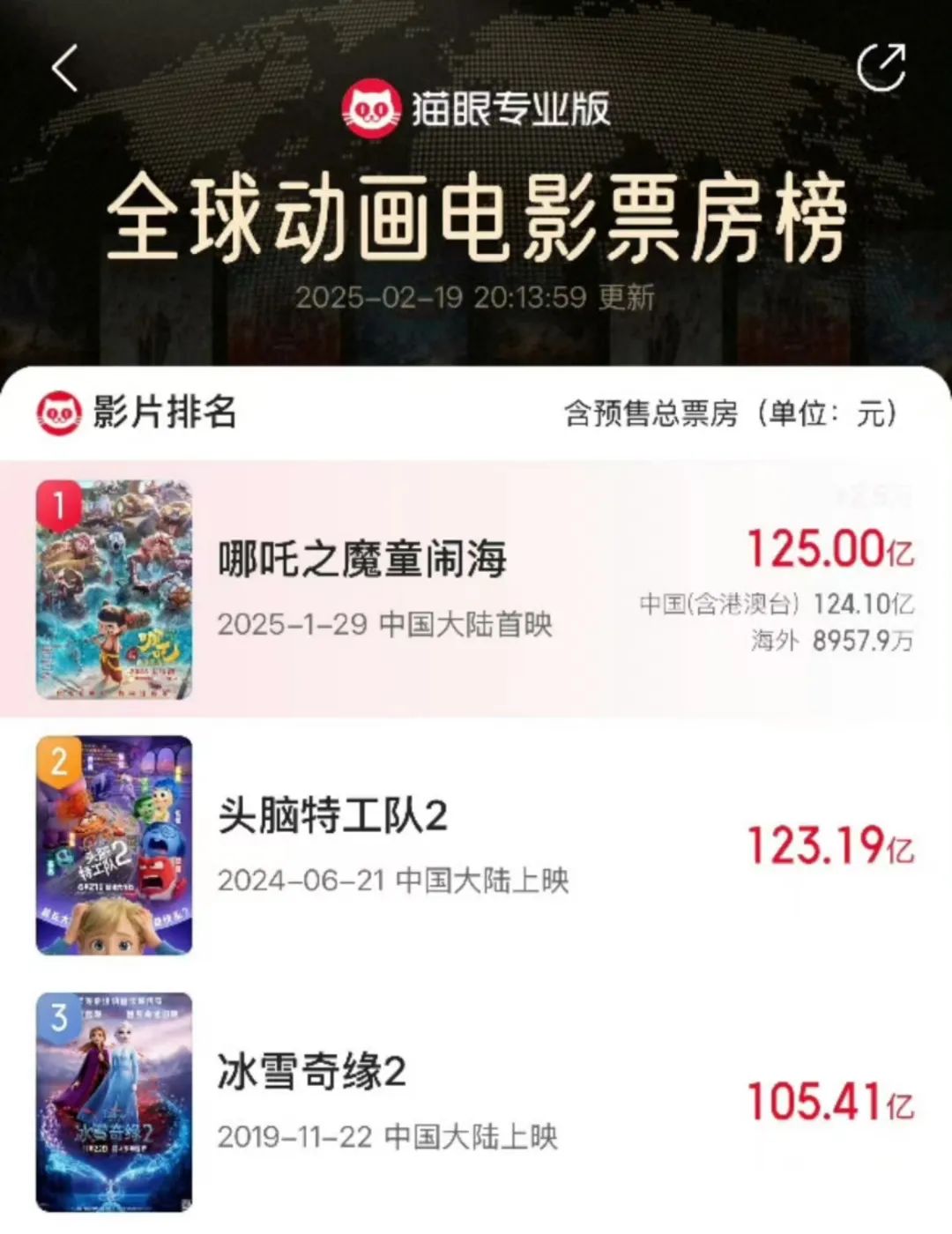 除美國和加拿大外,《哪吒2》還同步進軍大洋洲等國際市場。據Numero統計,《哪吒2》在澳大利亞91家影院亮相,首週四天共拿到235萬澳元,次於《美國隊長4:美麗新世界》(531萬澳元)和《BJ單身日記4》(445萬澳元),排在票房榜第三名。接下來,《哪吒2》將陸續登陸港澳、越南等地院線,有望在更多大銀幕留下足跡。
