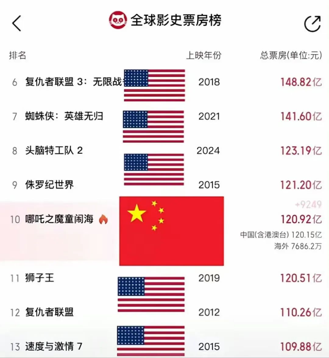 以當前的擴映步調,《哪吒2》在海外突破千萬美元不成問題,更長期的目標應瞄準由周星馳設立的標杆。2016年,由“星爺”執導的《美人魚》除在北美和澳新英公映外,還登陸馬來西亞、越南、新加坡等東南亞國家,海外總票房達到2696萬美元,迄今仍是過去10年的華語電影最佳。