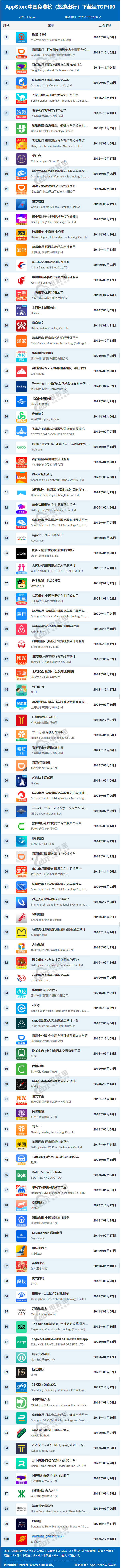 2月19日,我國“一帶一路”TOP10影響力社會智庫——網經社電子商務研究中心聯合網經社移動出行台發佈《2025年2月AppStore中國免費榜(旅遊出行)TOP100》,該榜單是基於iphone終端的下載量數據編制而成,數據截至2月19日12:06。