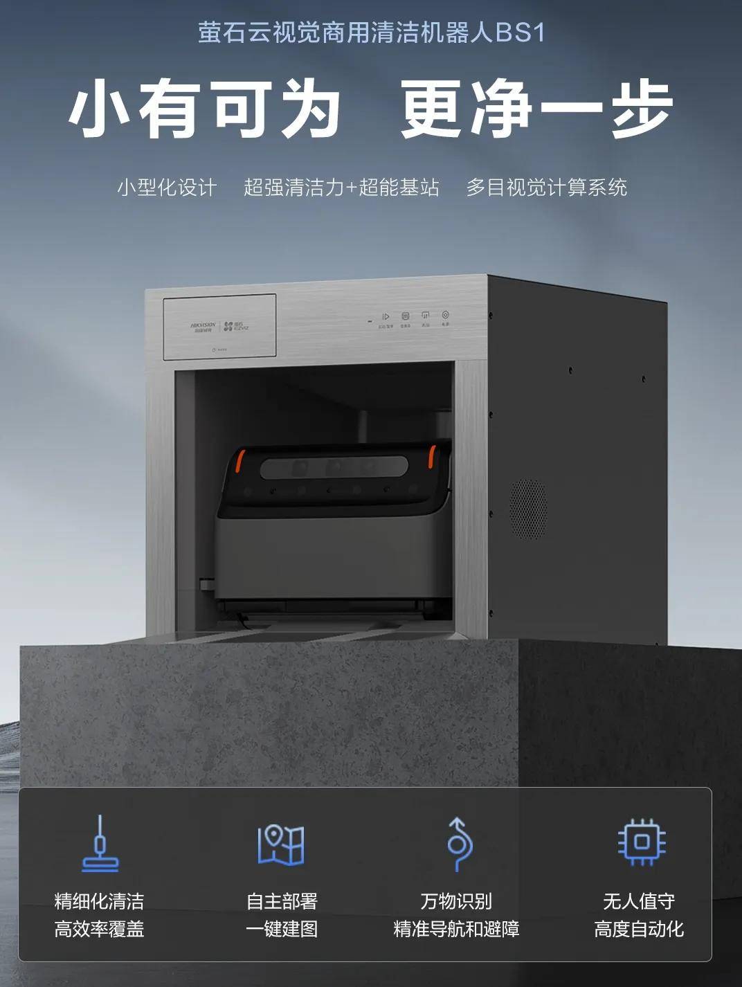 時間來到2023年,在視覺技術領域沉澱多年的螢石,順勢“殺入”到了商用清潔機器人賽道,推出了螢石雲視覺商用清潔機器人BS1,單從名字上就可以看到,螢石想要通過不同的技術路徑挑戰清潔機器人落地的“三重門”,進一步打開清潔機器人的想象空間。