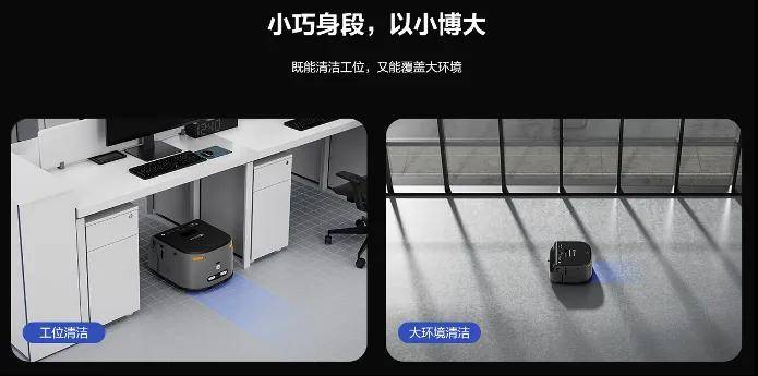 以辦公場所為例,人員流動頻繁,工位錯綜複雜,需要精準的定位、路徑規劃、避障等能力。目前市面上的商用清潔機器人,在需求最大、環境複雜的中小場景裏,可能存在繞障不絲滑、體積較大無法清潔低矮區域的情況,而且功能侷限在“清潔”這個單一的場景中。