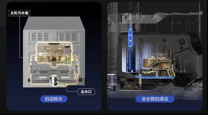 為了解決人工二次清潔、加排水等痛點,螢石BS1實現了滾筒和管道的自清潔;配合“超能基站”,免去了人工頻繁加排水的煩惱,螢石BS1能夠自動清潔並風乾滾刷、自動配置清潔液,打造了無人化的清潔體驗。
