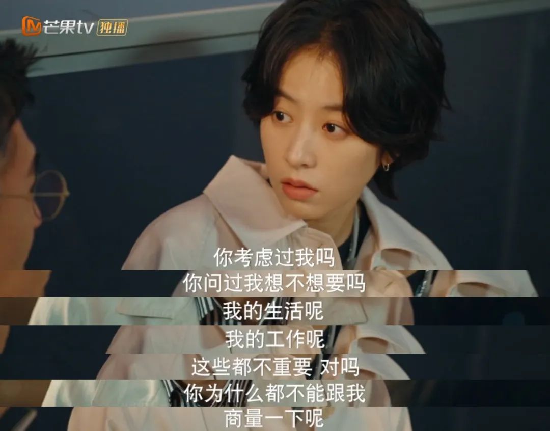 當全職媽媽期間,她能清醒意識到自己開始不自覺討好丈夫,也能準確表達自己的不適。