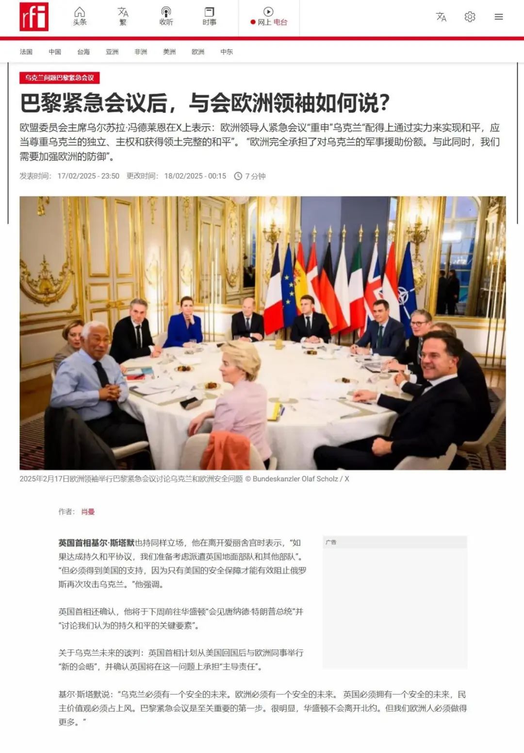 2月17日,法國總統馬克龍迅速召集多國首腦召開緊急會議,以應對這一突發情況。包括德國、英國、意大利、波蘭、西班牙、荷蘭和丹麥的領導人,以及歐盟委員會主席、歐洲理事會主席和北約秘書長,均出席了此次會議。會議的焦點是如何應對美國可能的撤軍,以及俄烏停戰後歐洲的防務策略。