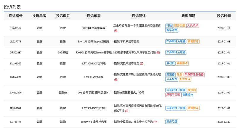 名爵汽車頻現質量問題,多車型引發投訴潮_風聞