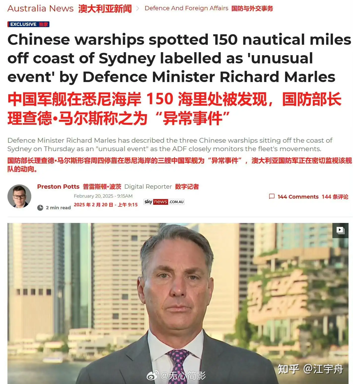 澳大利亞國防部趕緊貼出安民告示,是有三艘軍艦穿越了東南亞開過來,但又説只看到一艘護衞艦正在“穿越水域前往澳大利亞北部”,已嚴密監視,大眾心安。在和媒體的溝通中,國防部還特別強調了軍隊不慌,因為這**“並不罕見”**(not an unusual situation)。