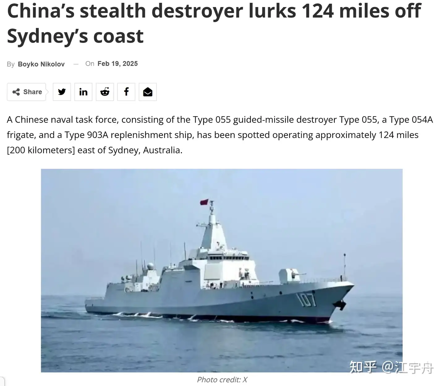 12^China’s stealth destroyer lurks 124 miles off Sydney’s coast https://bulgarianmilitary.com/2025/02/19/chinas-stealth-destroyer-lurks-124-miles-off-sydneys-coast/