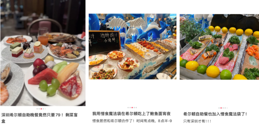包括深圳龍華希爾頓,也有晚上8點半-9點半推出的“剩菜盲盒”