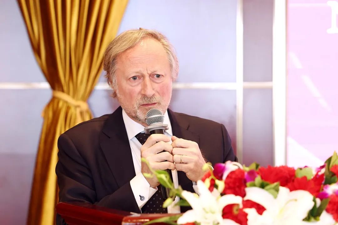 比利時駐華大使安博寧(H.E. Bruno Angelet)在發言中表示,歐盟與中國的關係在全球經濟中具有重要意義。他強調了中國在全球貿易和投資中的主導地位,特別是在基礎設施建設和製造業方面。安博寧提到,歐盟希望與中國建立更加平衡的合作,尤其是在技術轉移、聯合投資和共同創造就業機會方面。他強調,歐盟將繼續關注與中國的合作,同時保持自身的競爭力和獨立性。