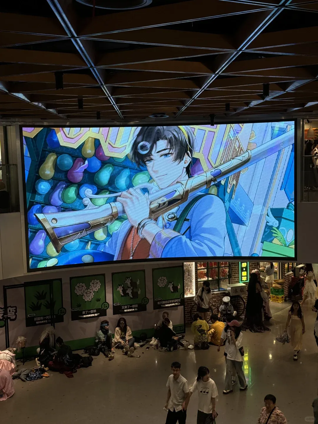 所以,線下商場之間的競爭已經開始從原本的地理位置、商場設施、服務質量、駐店品牌的傳統競爭模式,走向瞭如何用二次元吸引年輕人的新戰場。而在這場戰鬥中,內部是商家與商家在店內的設置佈局上的爭奪,外部則是玩家之間為搶奪大屏打卡的比拼。