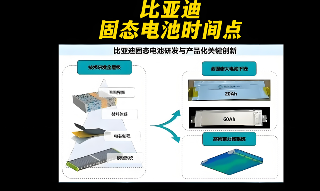比亞迪首席技術官孫華軍近日宣佈,公司已攻克全固態電池量產難題——60Ah樣品成功下線,預計2027年啓動示範裝車,2030年全面鋪開。