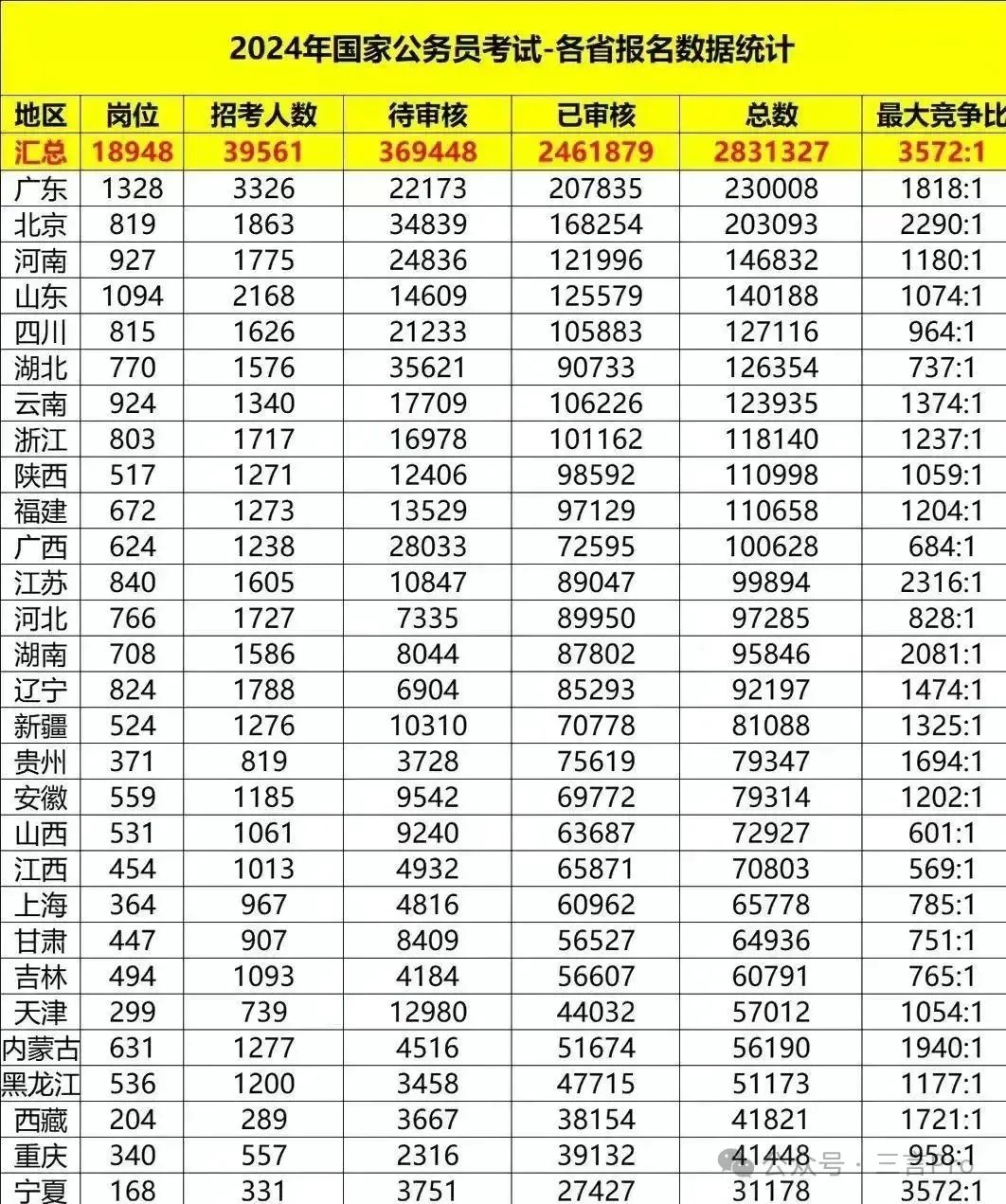 至於山東人愛考公考編,事實上,2024年國考人數超過二十萬的兩個省市,只有廣東和北京,山東排第四,比河南還少一點。