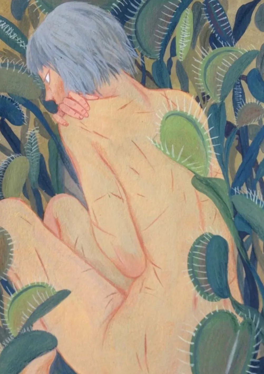 因為她美,所以吸引了很多不好的男性,這些男性在她身上做出了不好的舉動。
