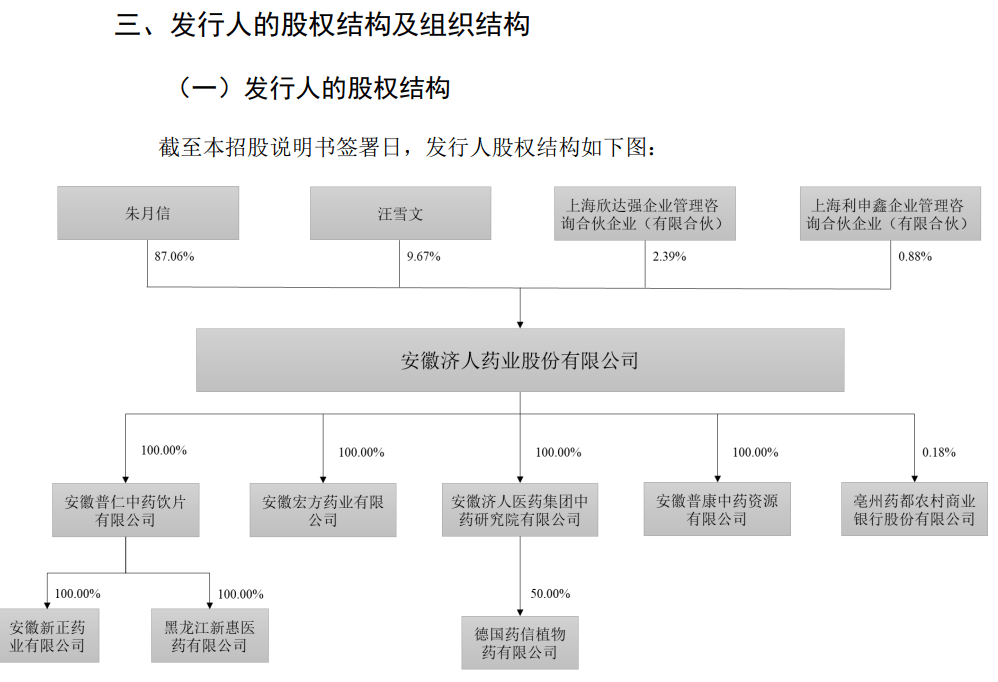 朱月信、汪雪文夫婦及其子朱強通過直接或間接方式控制了濟人藥業99.12%的股份。這種高度集中的股權結構可能導致濟人藥業治理缺乏制衡,決策透明度不足,進而影響濟人藥業的長期發展。
