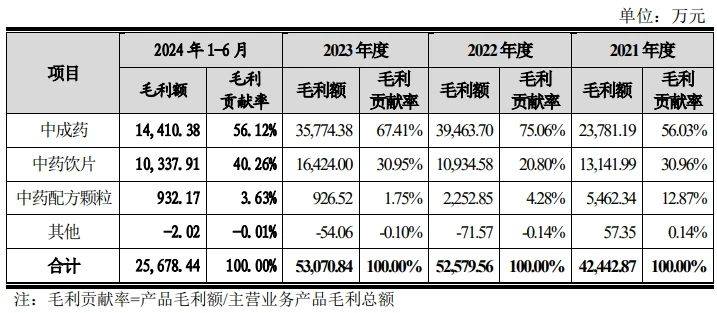 濟人藥業主營業務毛利主要來自中成藥和中藥飲片銷售,合計毛利貢獻率在87%至98%之間。