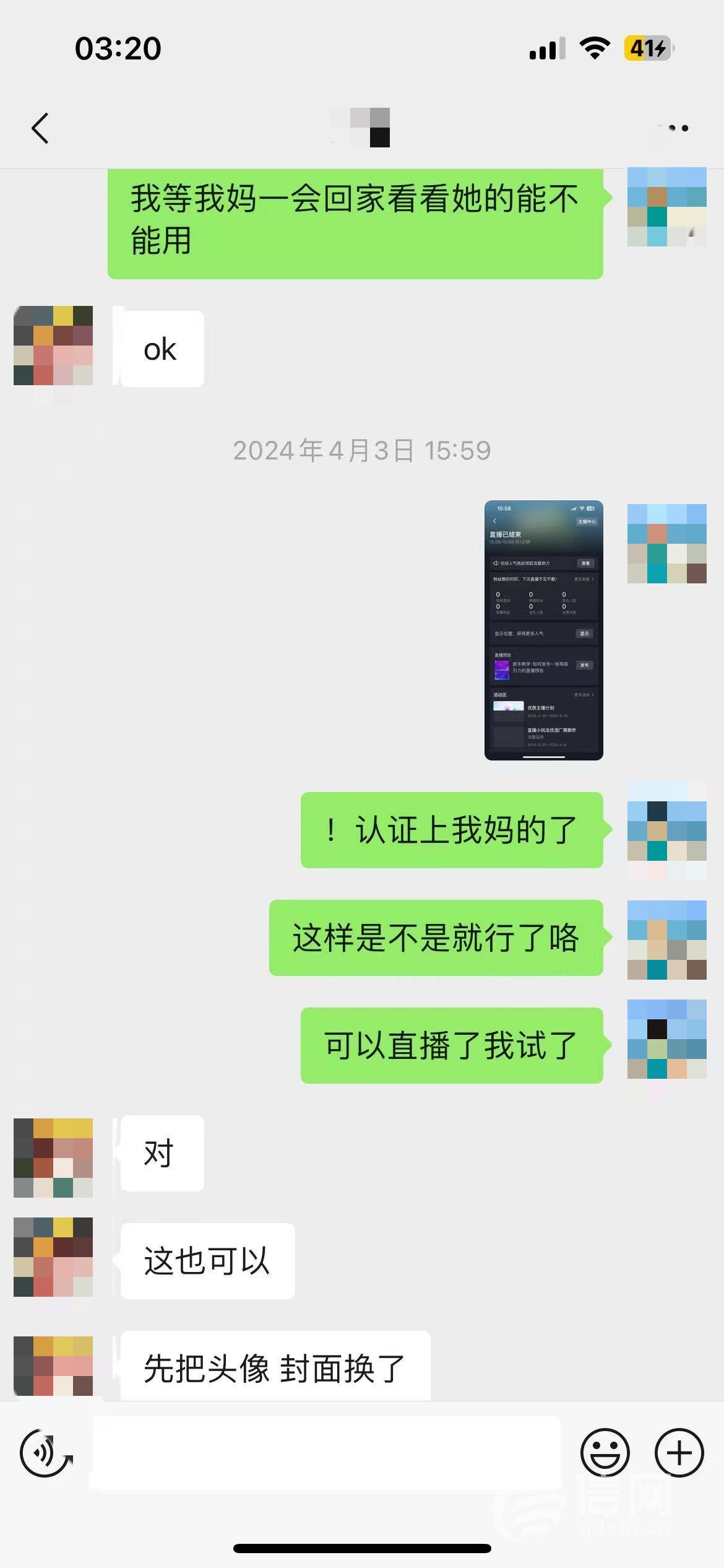 簽約前,小毛就告知公司自己原先的抖音賬號不能作為直播賬號,公司表示可以為她提供賬號。可根據毛女士提供的聊天記錄來看,簽約後小毛的經紀人就説沒有多餘的賬號,讓她用家人的身份信息註冊一個。“當時我女兒就用我的身份證實名認證了一個新的抖音賬號,公司給她前前後後轉了大約有一萬九千元,説是給她買設備的扶持金。”