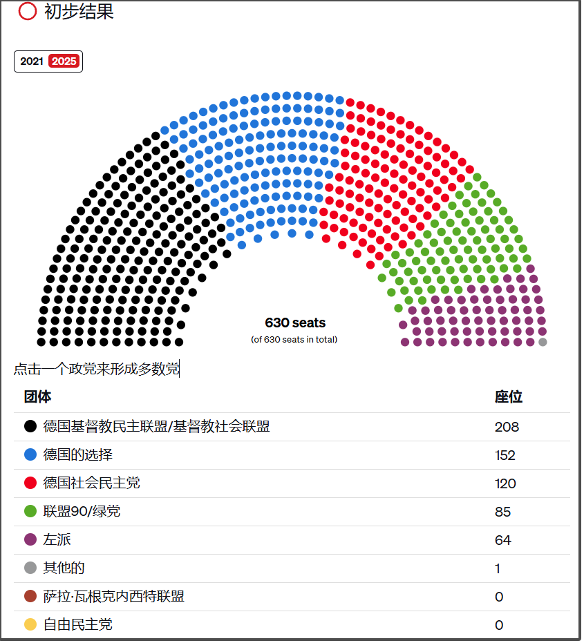 所以這次選舉裏,自民黨和BSW因為得票率達不到5%,所以沒有獲得議會席位。